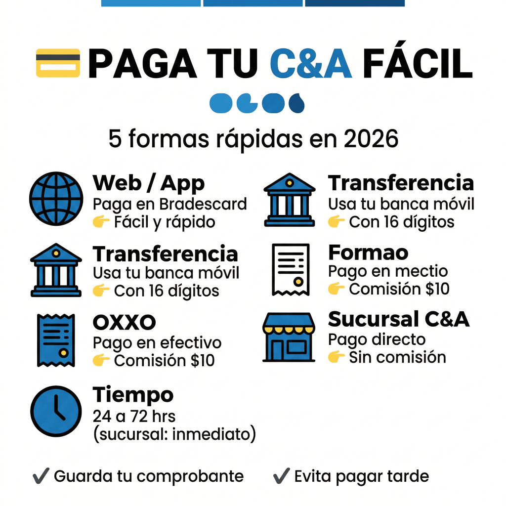 Existe una opción más práctica y segura para pagar tu tarjeta C&A desde la aplicación de tu banco de preferencia. Puedes hacerlo de la siguiente manera y sin necesidad de ir a sucursal, todo desde tu app